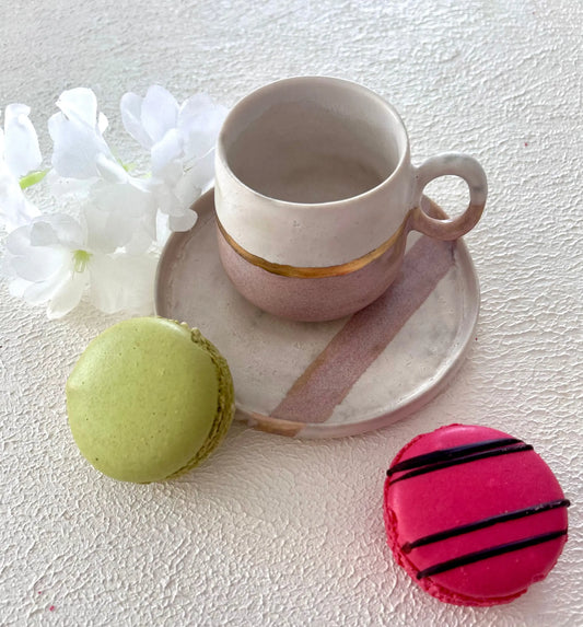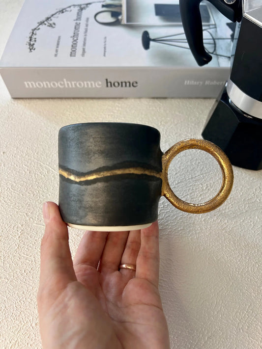 El Yapımı Seramik Kupa Altın Detaylı Kahve Fincanı