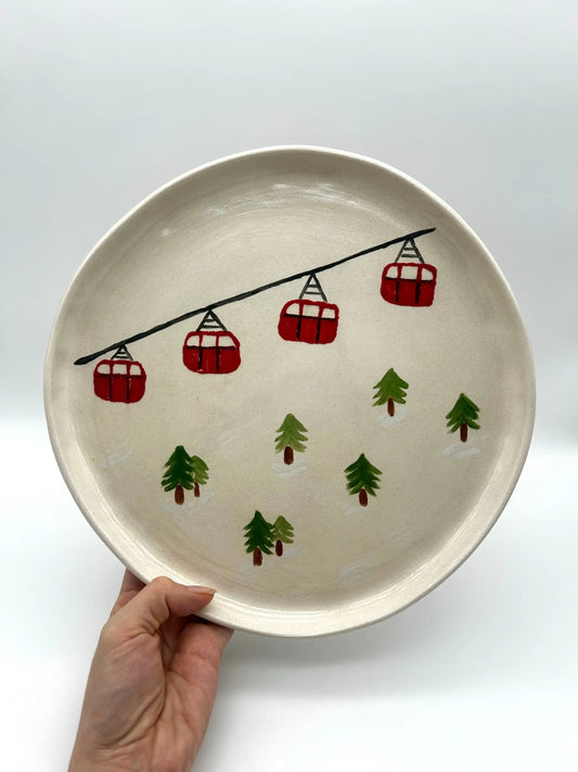 Sepette %20 İndirim🔔 El Yapımı Seramik Yılbaşı Temalı Teleferik ve Çam Ağaçları Tabak